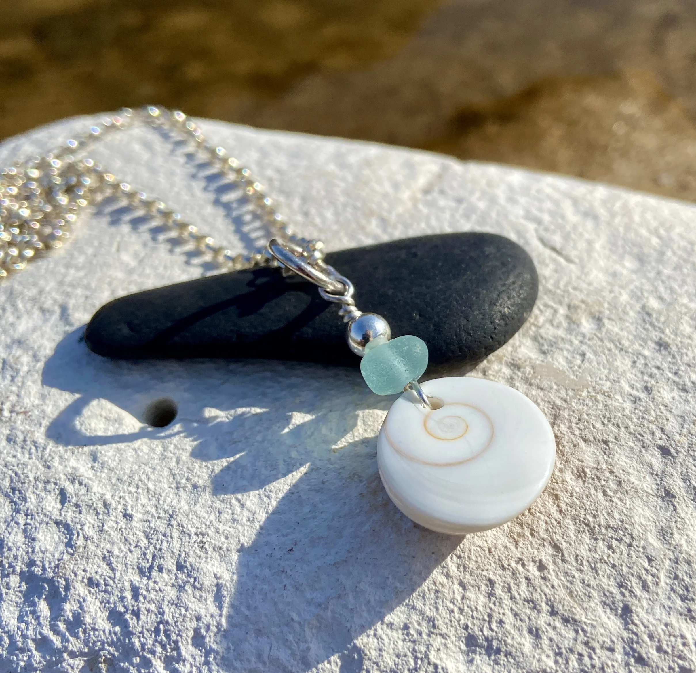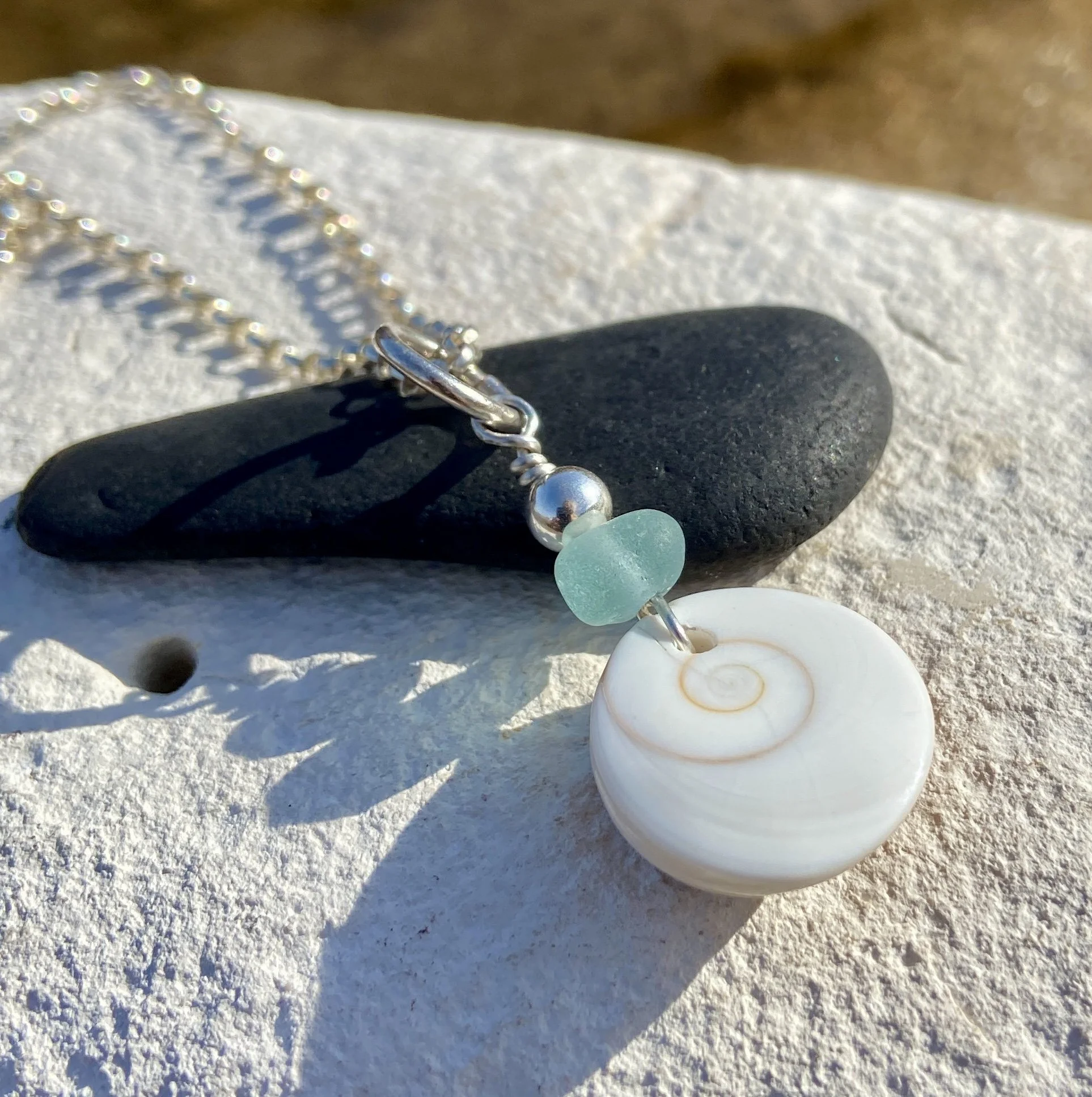 Created with a chunky piece of Aqua sea glass which is finished with a smaller piece of Yellow Sea glass.