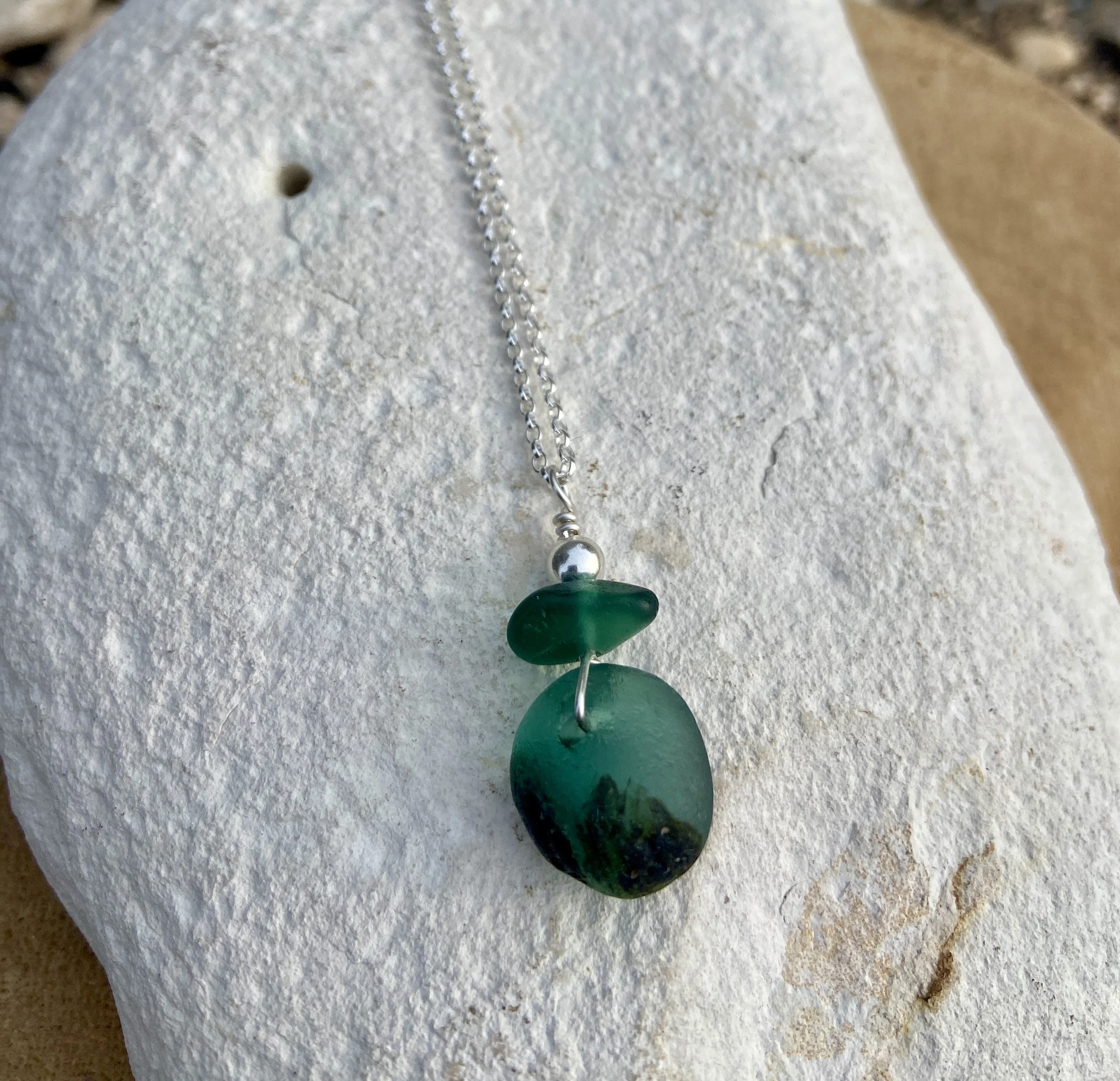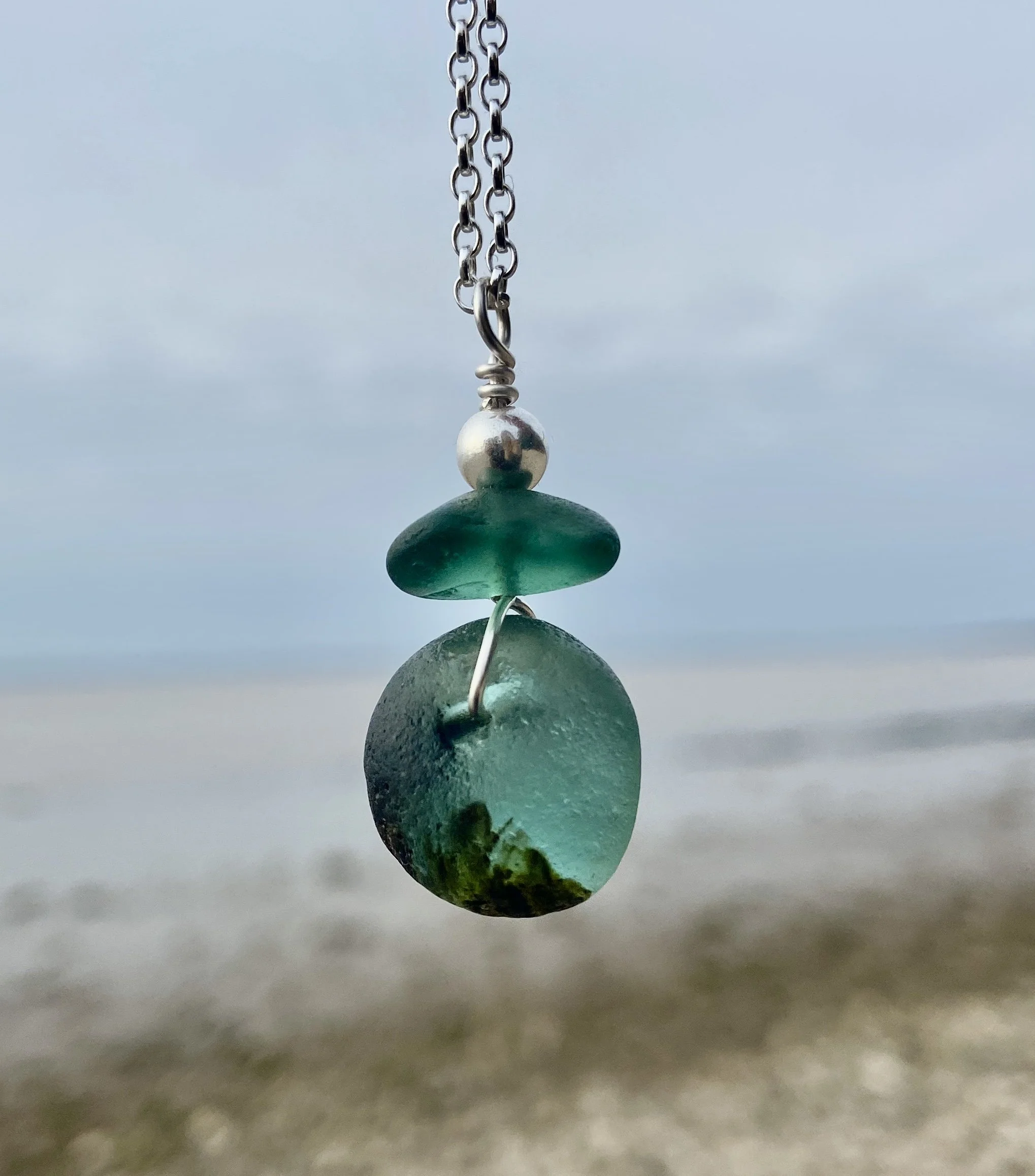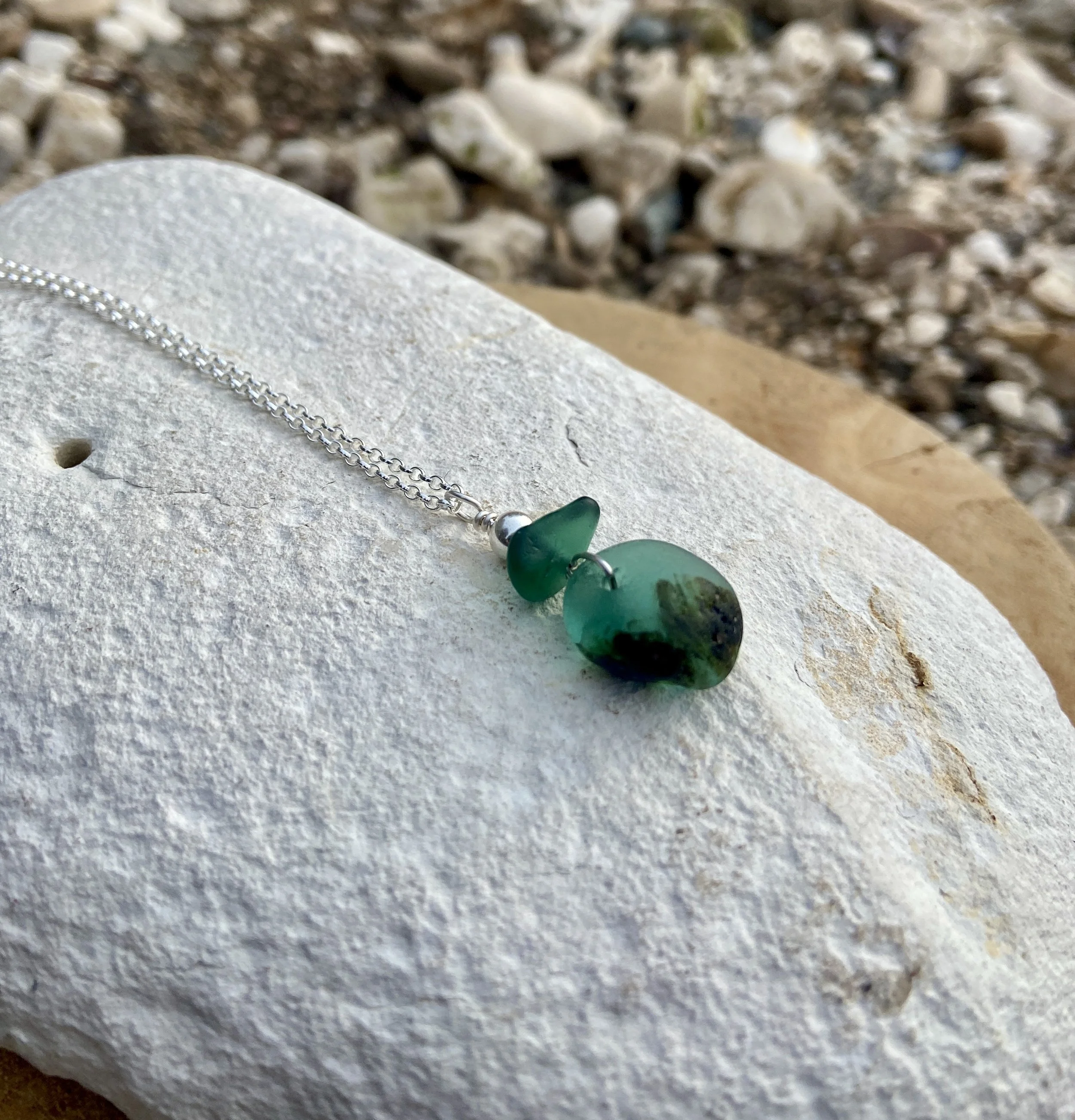 Created with beach combed sea glass which has been collected from Seaham on the North East Coast of England.